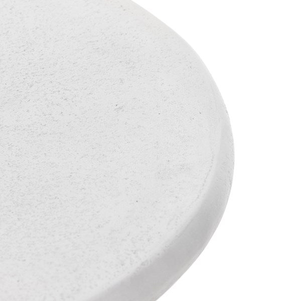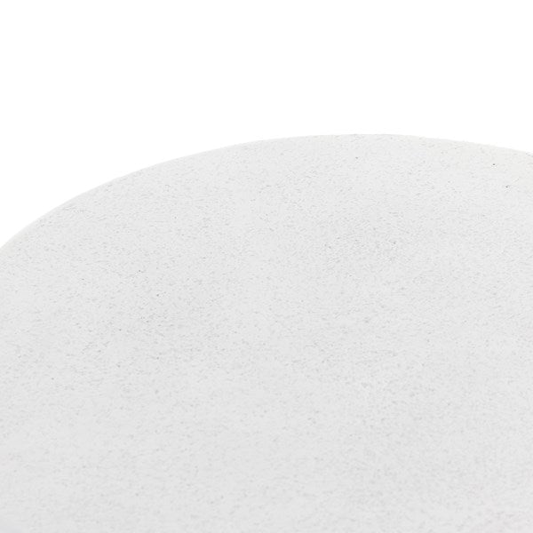 Crisp, clean and beautifully simple. Light-finished oak forms a three-leg frame for a rounded tabletop of white-finished faux concrete.