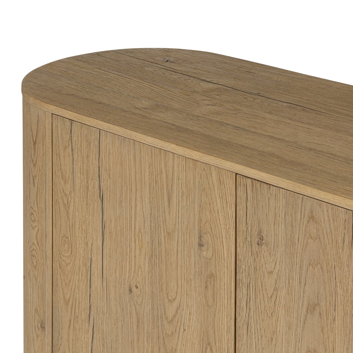 Aged black acacia forms curved legs and the cabinets of this sideboard. Generous interior space for dining storage needs and beyond.
