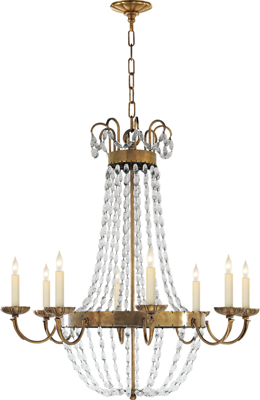 The Paris Flea Market Medium Chandelier features a unique design. It requires eight E12 Candelabra bulbs. This chandelier adds a touch of elegance to any space. It weighs 20 lbs.