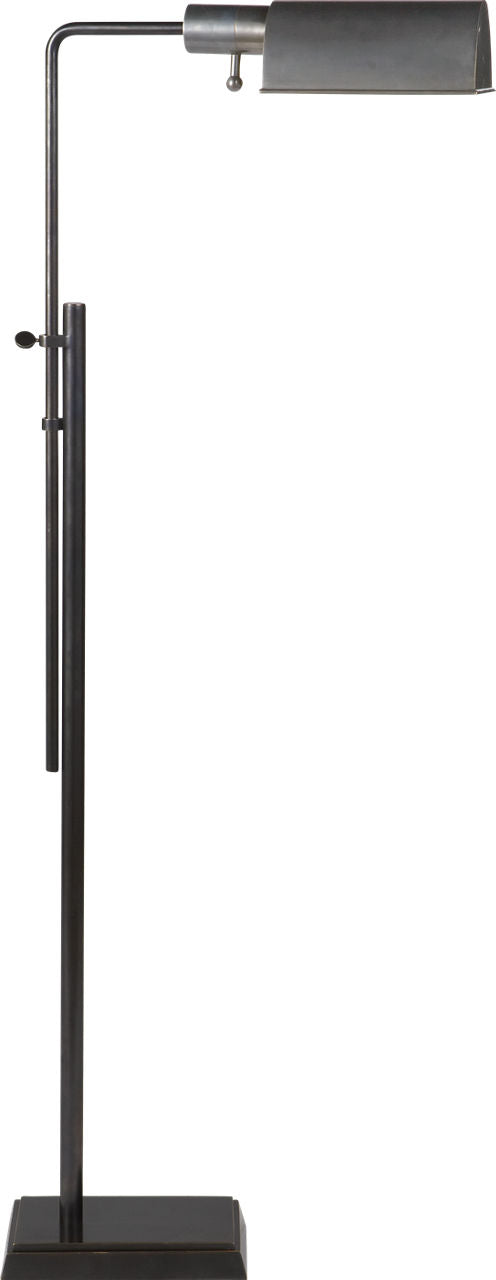 The Pask Pharmacy Floor Lamp offers a blend of functionality and classic design. It features an adjustable height and extension, making it suitable for various lighting needs. The lamp has a rectangular base and a simple shade, complementing a range of interior styles.