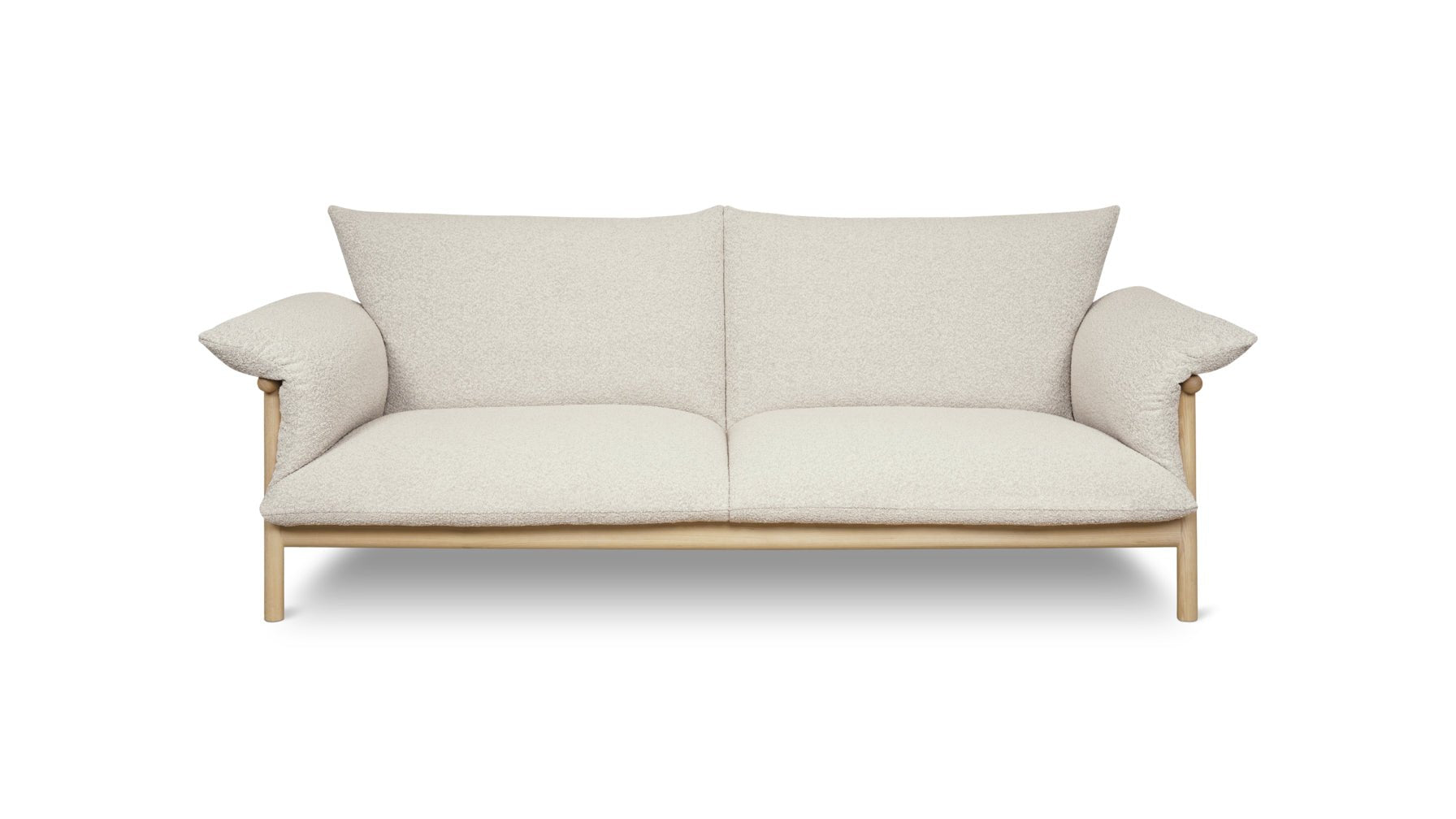 If our Pillow Talk Sofa could speak, it would invite you to sit down and get comfortable. An exposed solid ashwood frame creates a sturdy and beautiful base for plush cushions, and makes this sofa looks polished from every angle. Tightly stitched fabric arm slings ensure everything stays neatly in place, and a higher profile backrest provides lots of back and neck support—so you can sit back and chat a little longer.