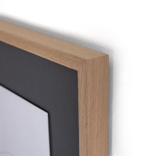 A strikingly minimalist work by Atlanta-based artist Christina Kwan, printed on watercolor paper and framed within natural-finished American oak, for a museum-quality look. Handmade in Austin, Texas.