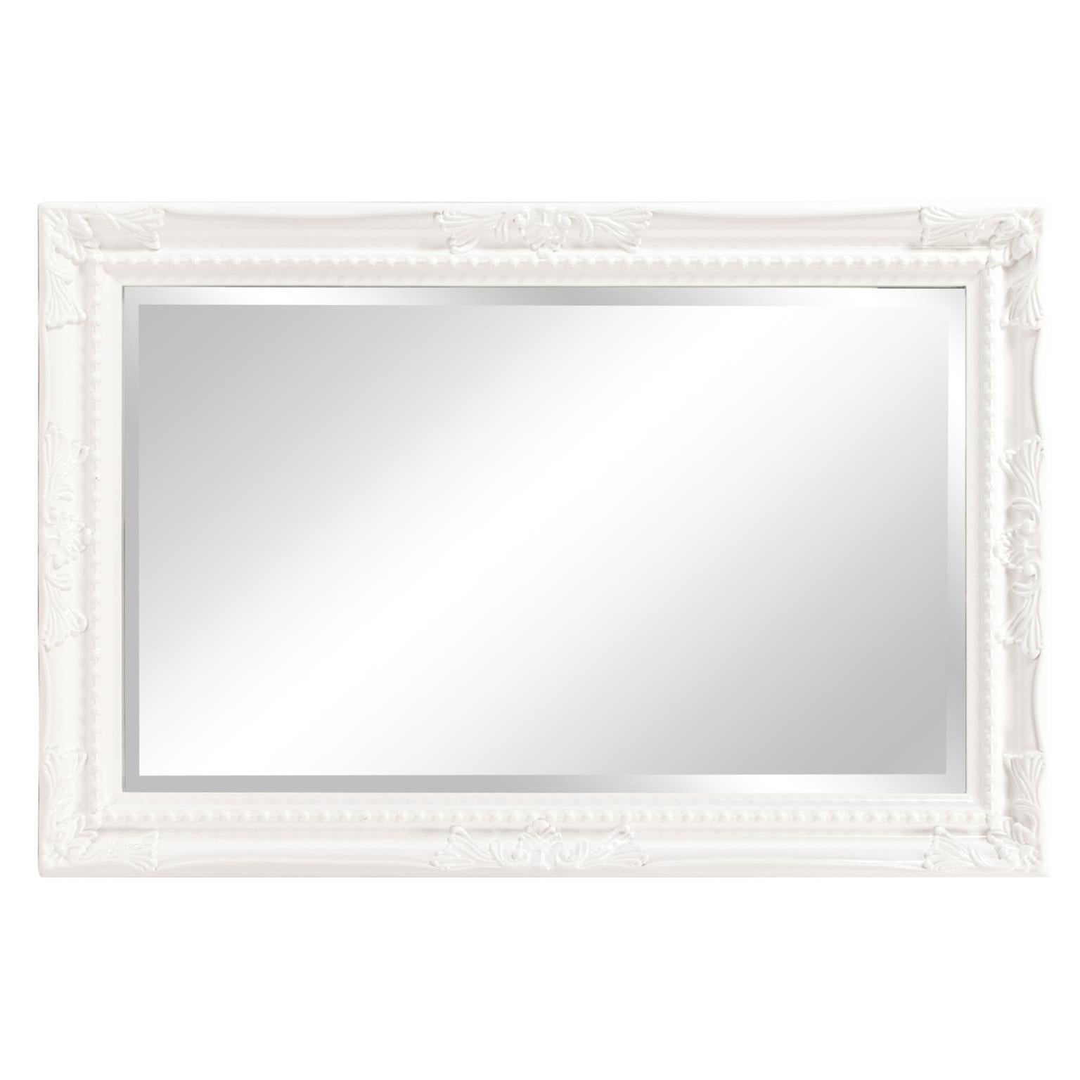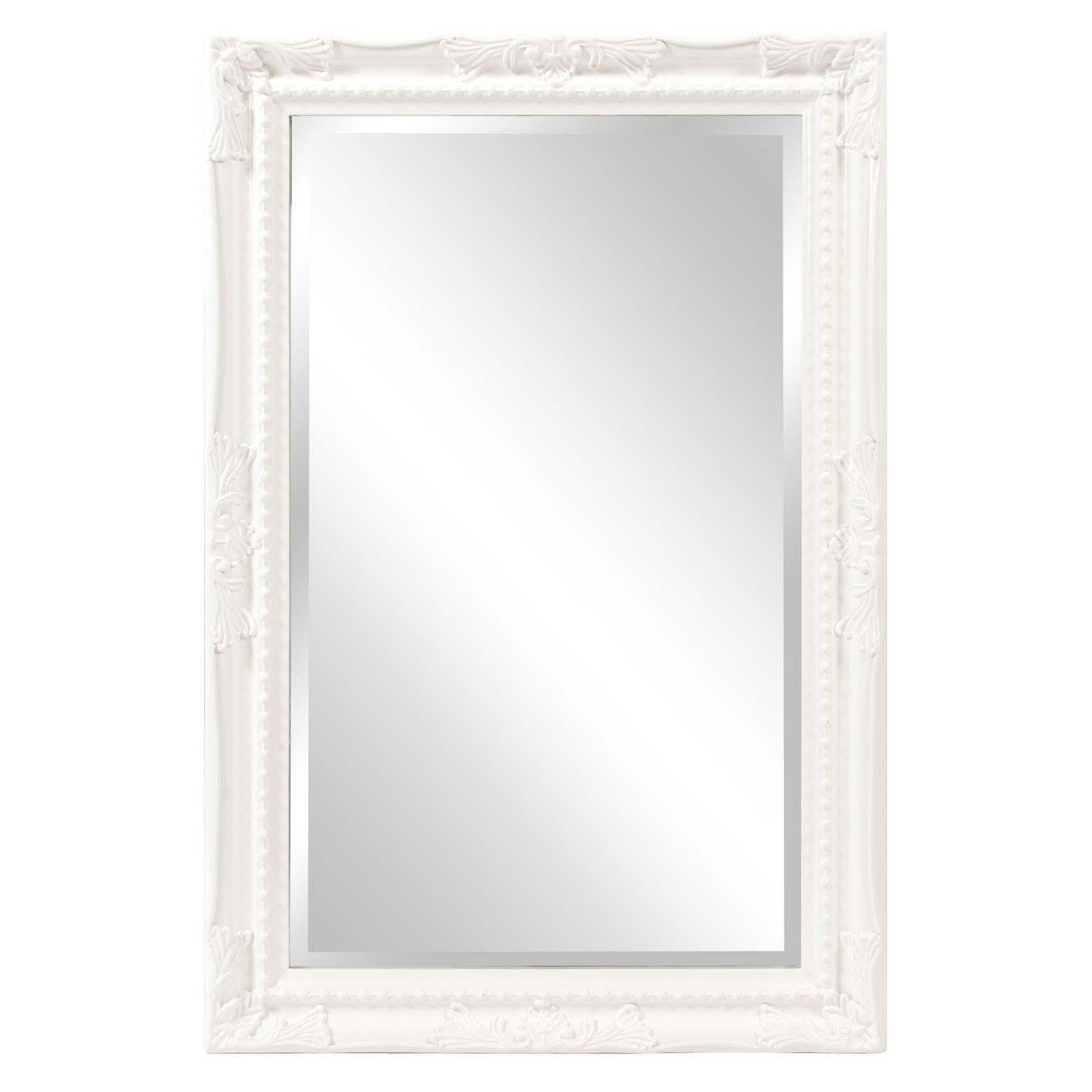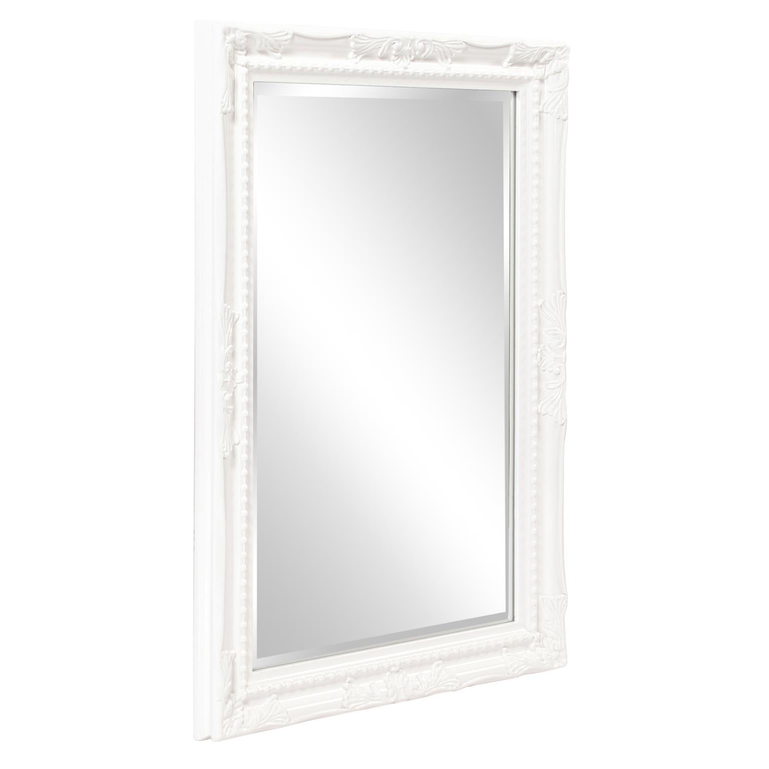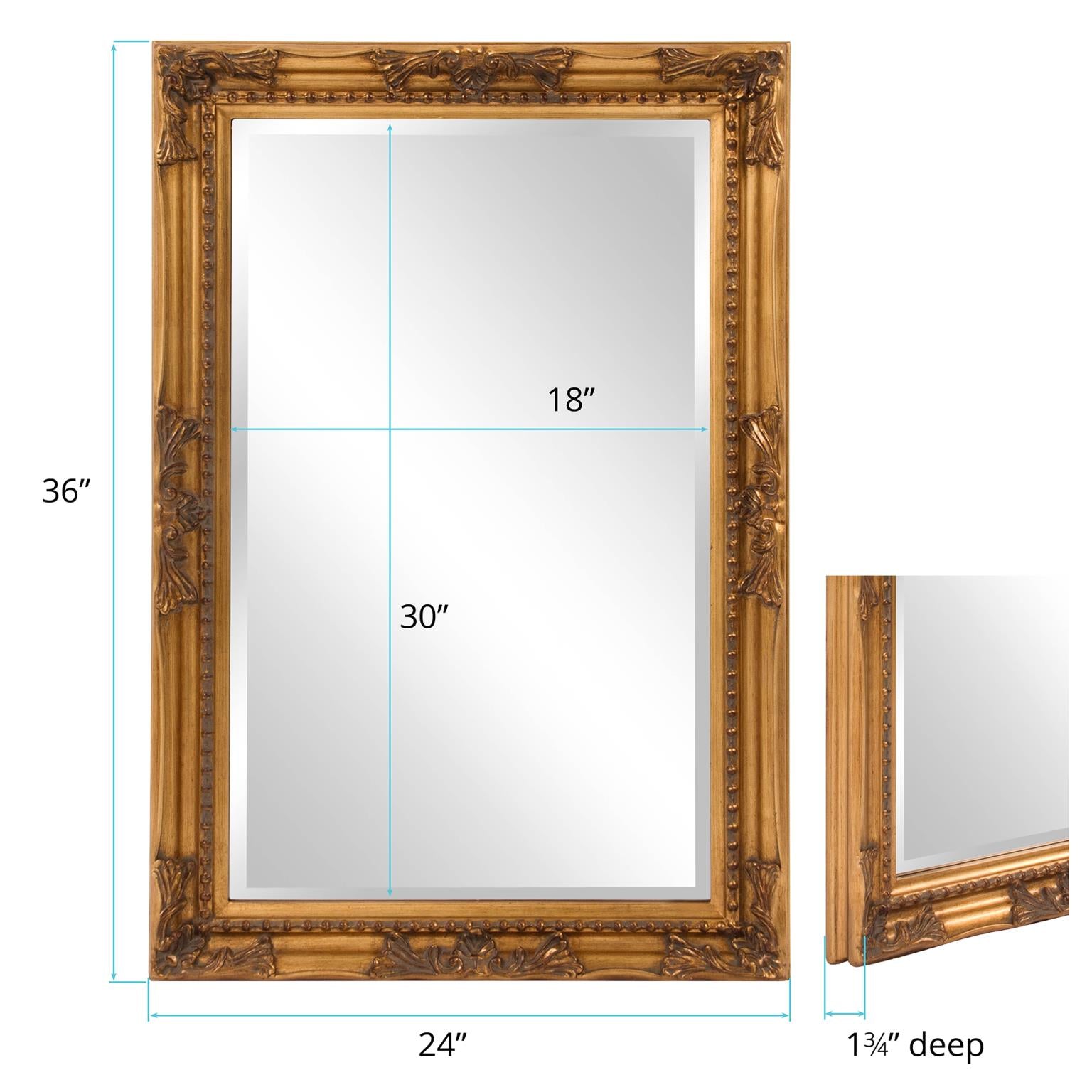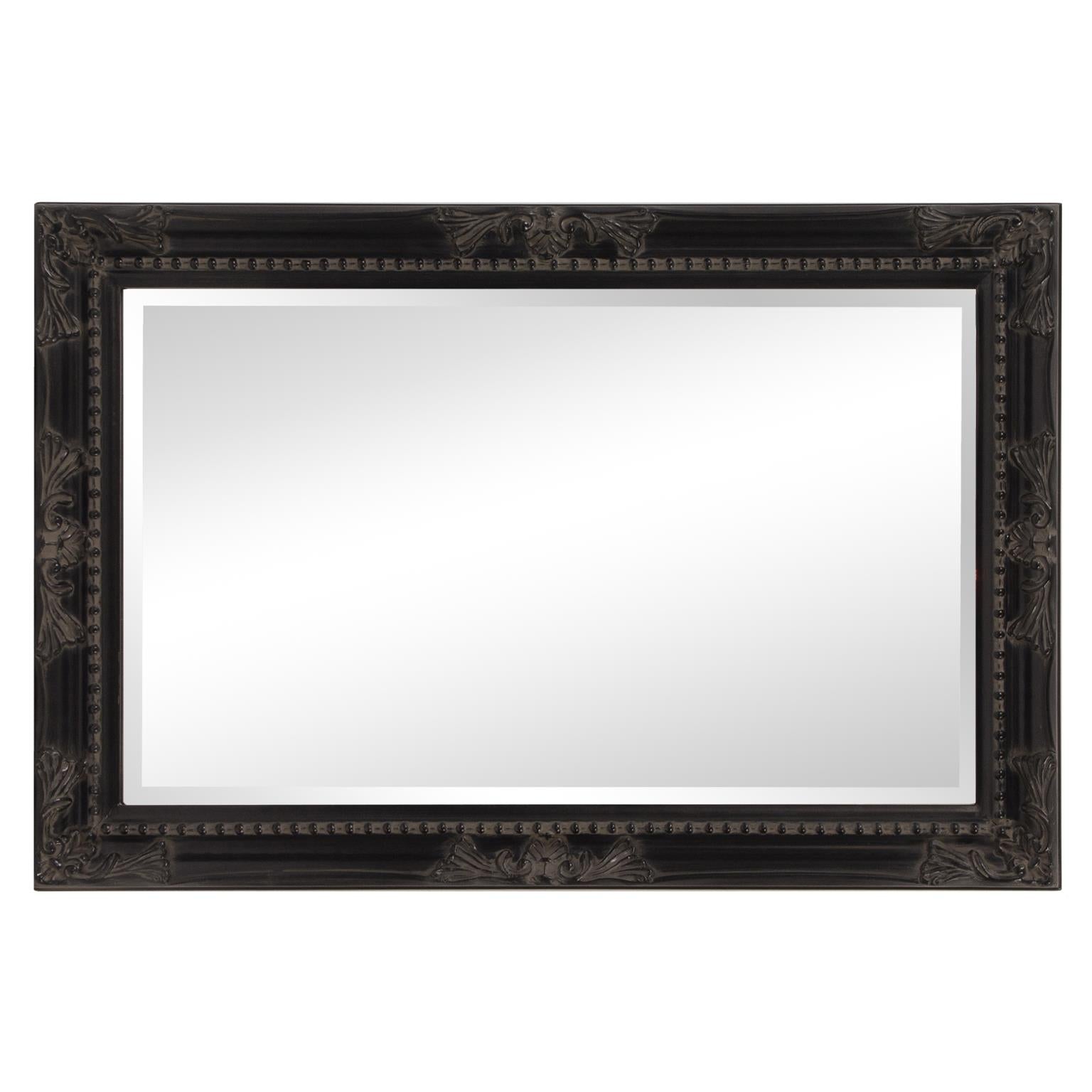 The Queen Ann Mirror features an antique silver finish. The rectangular frame is made from wood and is accented with a beaded textured inset and decorative adornments on each side of the frame. For more added detail the mirror features a one inch bevel. Its Traditional style makes this mirror a favorite for bringing some flair to your decor. This simple yet stunning piece would be a great addition to any room. It is a perfect focal point for an entryway, bathroom, bedroom or any room in your home. D-rings are affixed to the back of the mirror so it is ready to hang right out of the box in either a horizontal or vertical orientation! Also available in an oval shape.