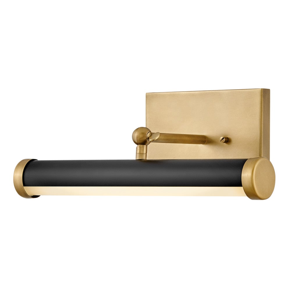 The Regis Small Adjustable LED Accent Light features a heritage brass finish with black accents and a steel construction. It includes dimmable integrated LEDs with a 360 degree rotating linear head for precise lighting adjustments. This versatile fixture can be mounted up, down, vertically, or horizontally to best fit your space. It combines traditional and modern design elements with energy-efficient performance and a dry rated build.