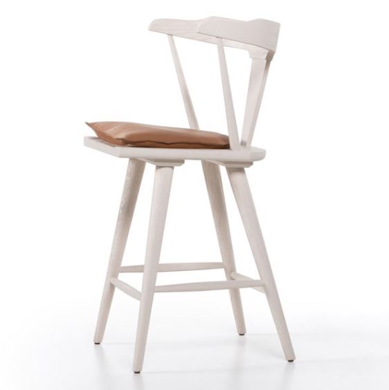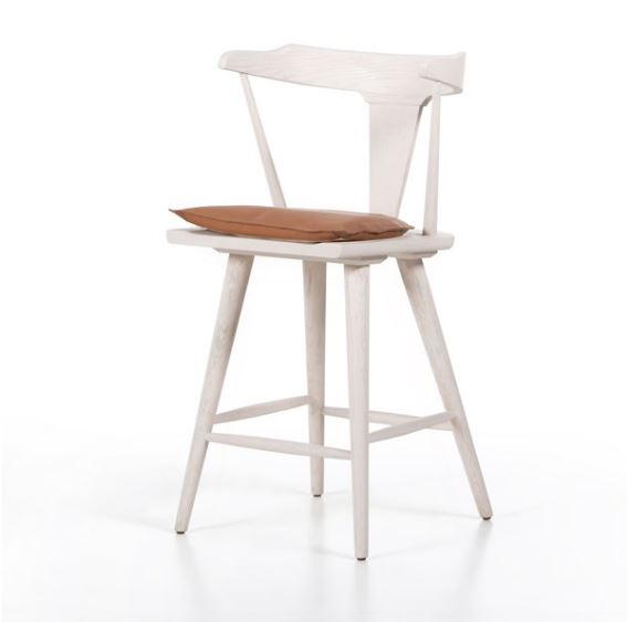 3. Ripley Stool with Cushion-Off White-Counter, Whiskey Saddle
