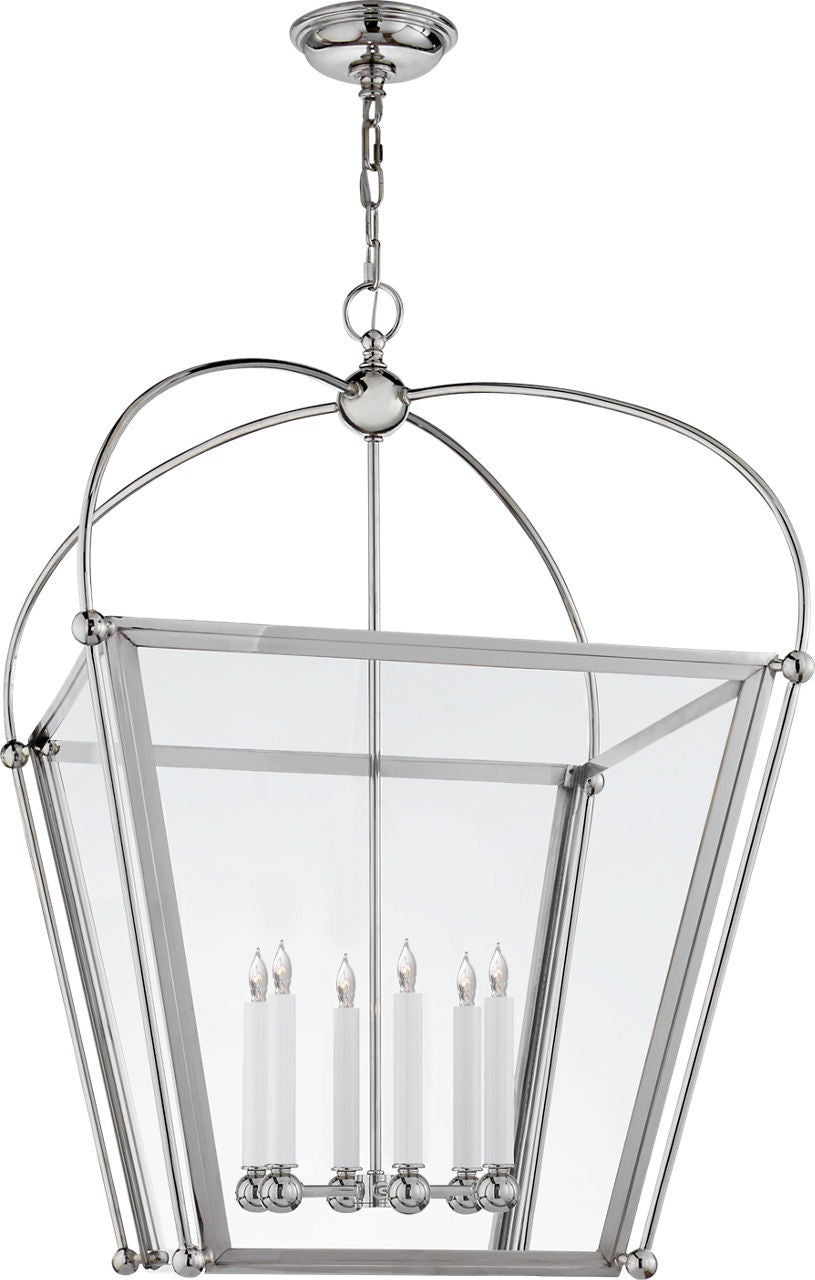 The Riverside Large Square Lantern features a sleek, geometric design. It provides ambient lighting. This lantern is suitable for a variety of interior styles. Its square frame and clear glass shade create a sophisticated look.