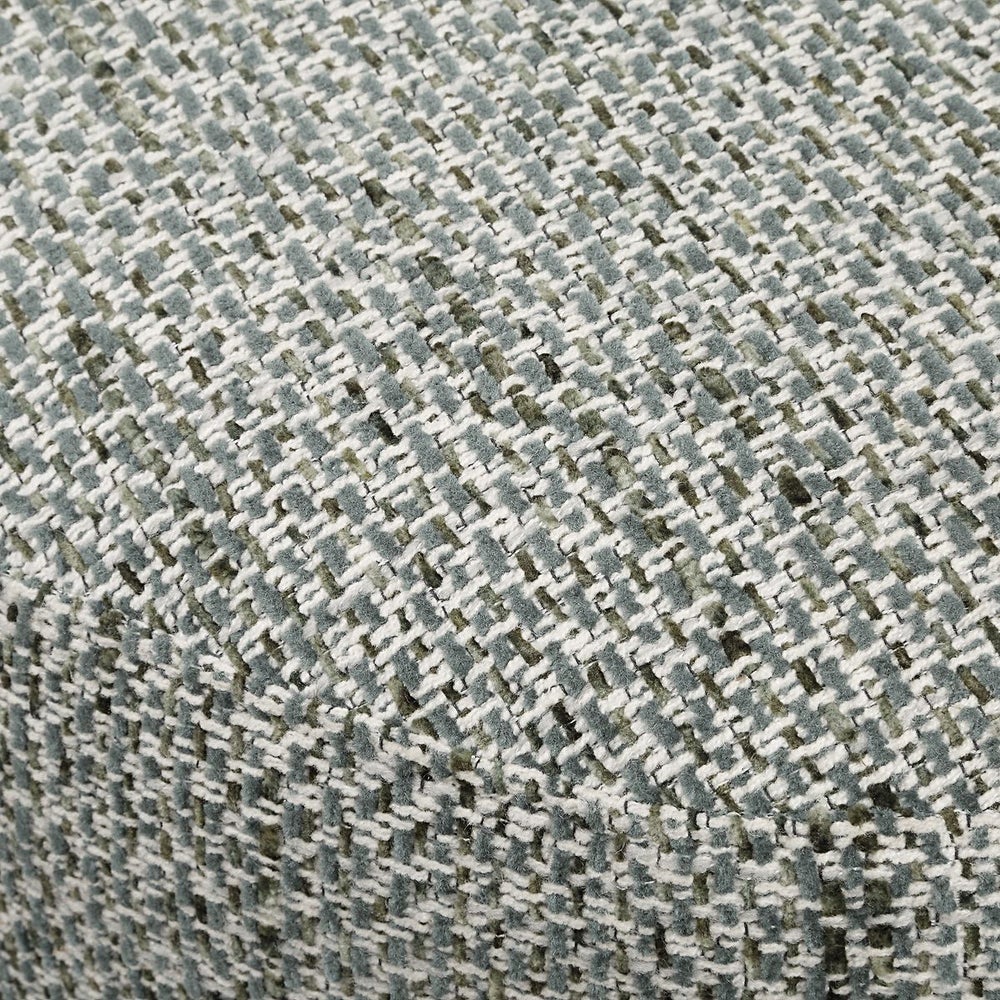 Inspired from classic vanity seating but proportioned for dining, the Roll With It chair features rolling casters for ease of use. Its smooth lines are fully upholstered in a textural woven chenille in rich emerald, white and teal tones.