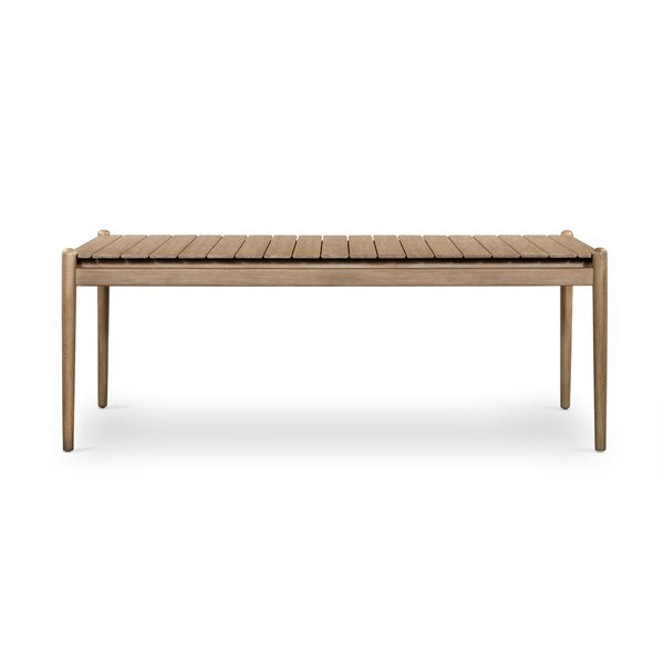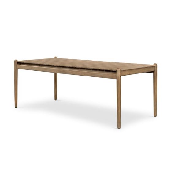 Made with FSC-certified eucalyptus, a rectangular, slatted dining table presents the perfect gathering place for outdoor entertaining. Visible through the top, tapered leg detailing adds a unique touch. Cover or store inside during inclement weather and when not in use.