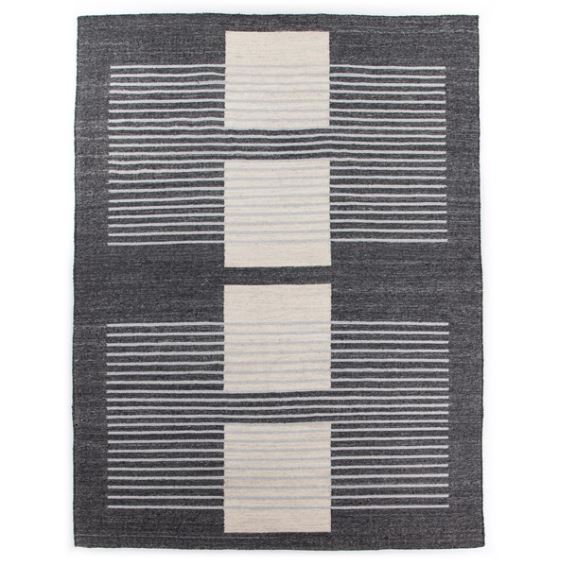 Inspired by minimalist art, a wool-blend area rug features a beautiful blend of grey, cream and taupe, with a linear, shape-driven look for modernity.