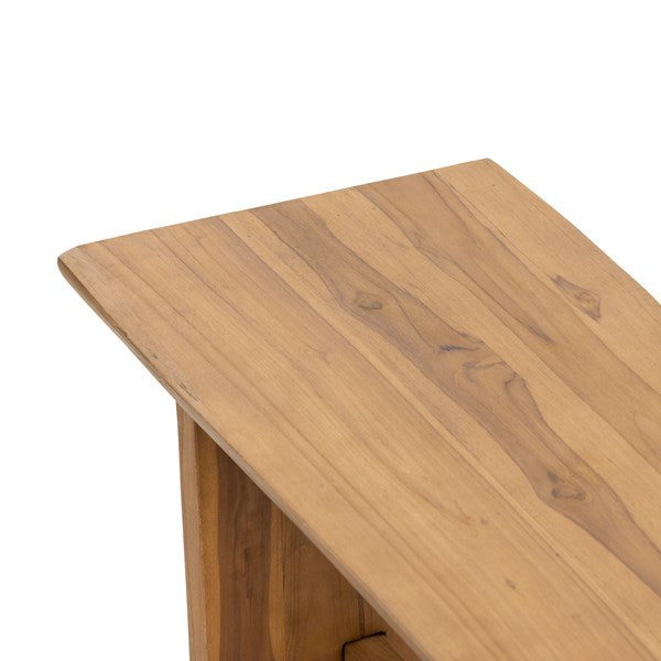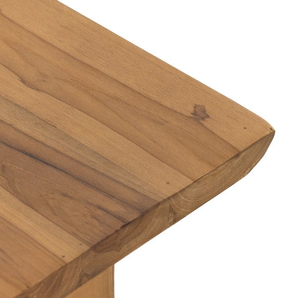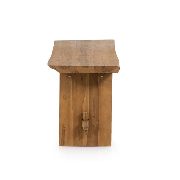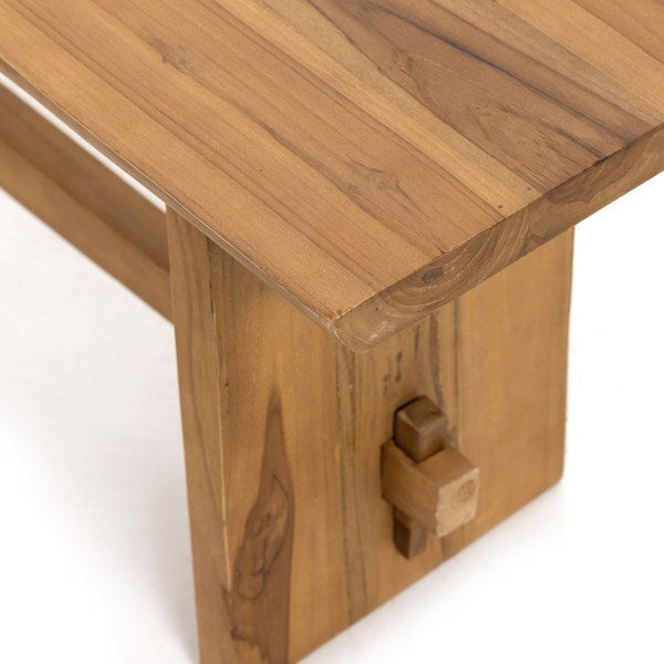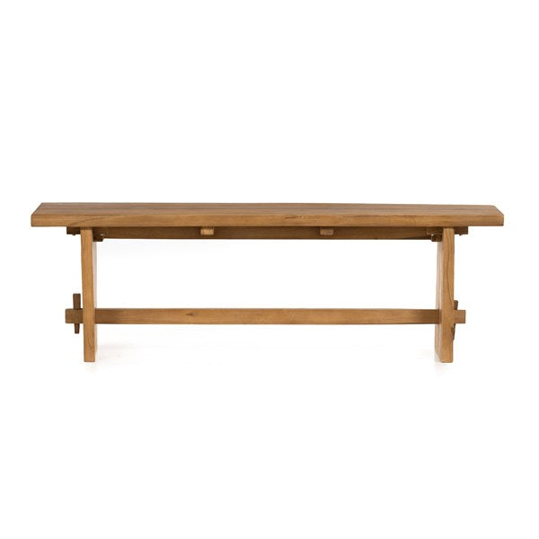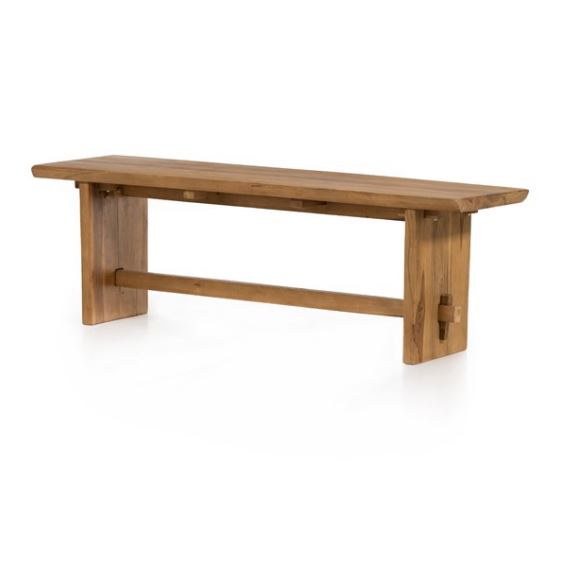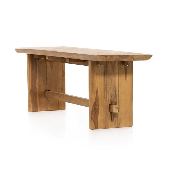 Made from solid natural teak, an outdoor-friendly bench makes for stylish extra seating or a timeless home for planters, lanterns and more. The natural shape of the teak is complemented with beautiful mortise-and-tenon joinery for a unique, handcrafted feel. Perfect for the dining room, entryway or any space, both indoors and out. Cover or store indoors during inclement weather and when not in use.