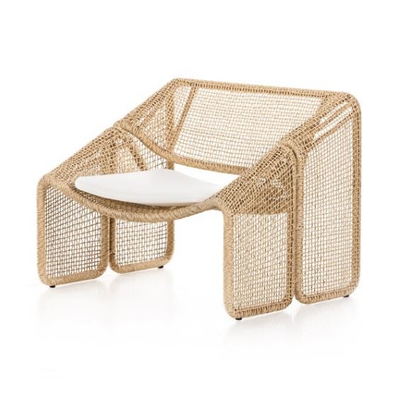 Great texture for the great outdoors. Woven all-weather wicker forms a light, hyacinth-like frame for a durable ivory seat cushion, spurring a grand, shapely look and feel. Cover or store indoors during inclement weather and when not in use.