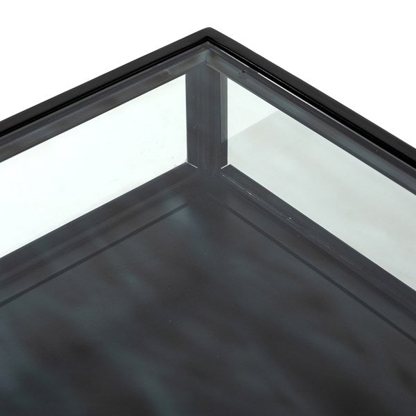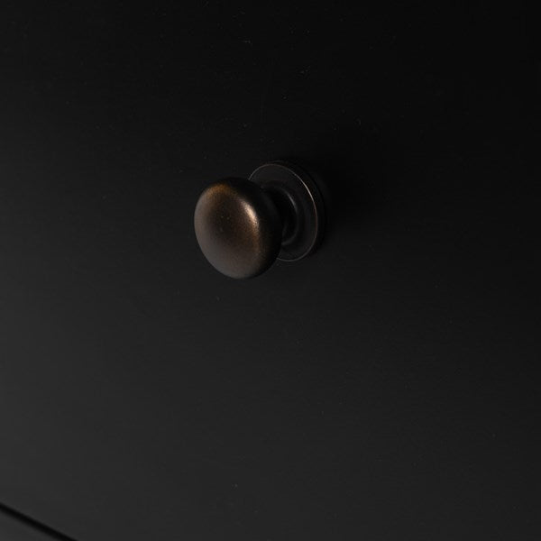A shadowbox-style filing credenza balances work with play. Display prized possessions in a glass enclosure with matte-black metal and brass knobs. Roomy file drawers for handy storage of legal and letter sized documents, with side cabinetry for even-more storage. Option to pair with matching desk.