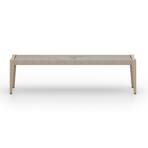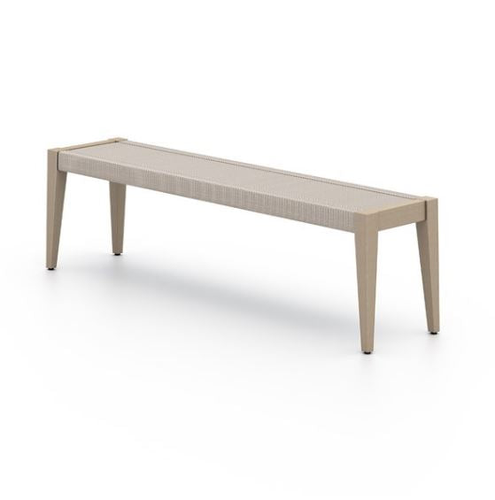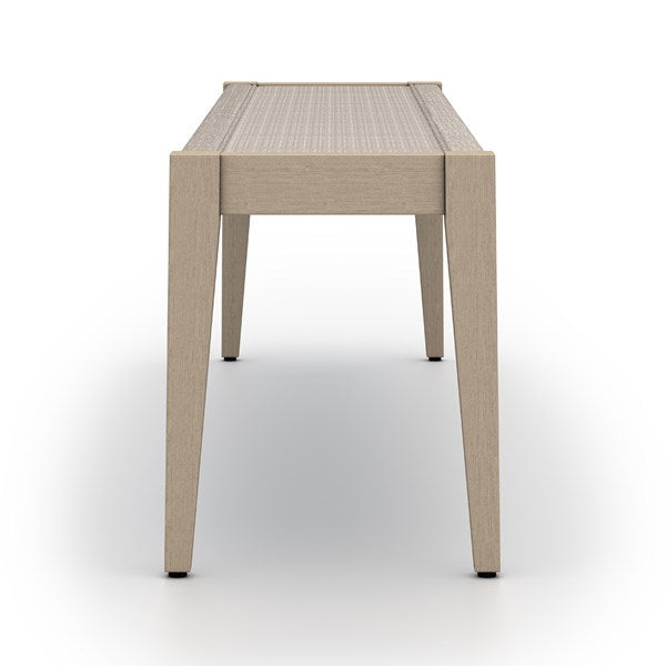 Modern materials ready a stylish silhouette for outdoor dining. FSC-certified teak forms a clean frame for UV-resistant and water-repellent fabric in an invitingly neutral hue. Cover or store indoors during inclement weather and when not in use.