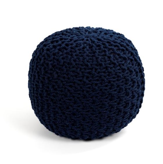 This chunky knit pouf doubles as an extra seat or place for propped feet. Made from outdoor- and eco-friendly PET. Cover or store indoors during inclement weather and when not in use.
