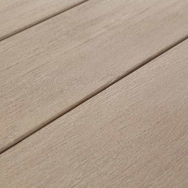 Clean and angular for streamlined effect. Planks of grey teak take on weathered grey tones for neutral versatility. Natural graining reveals organic roots.