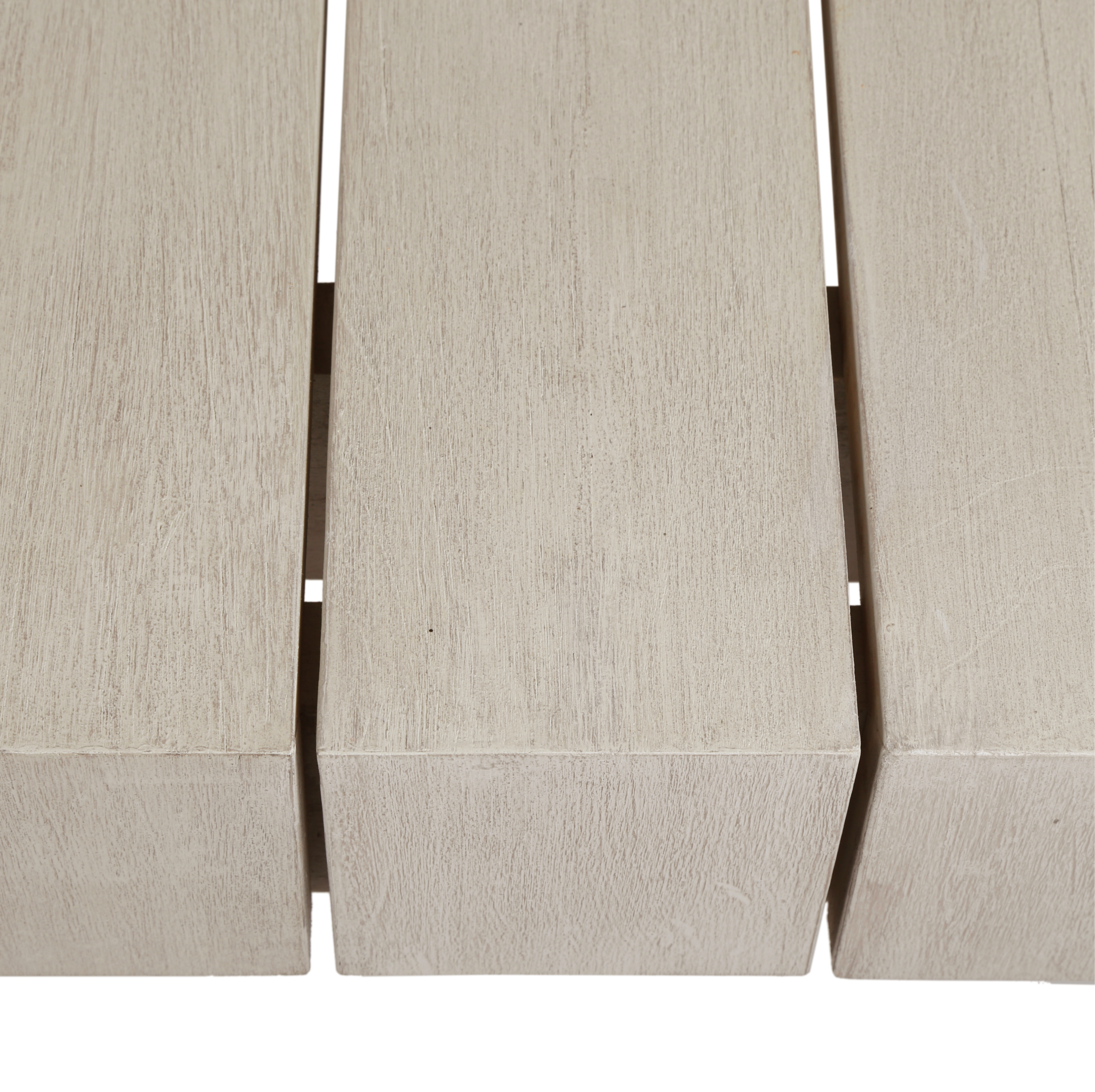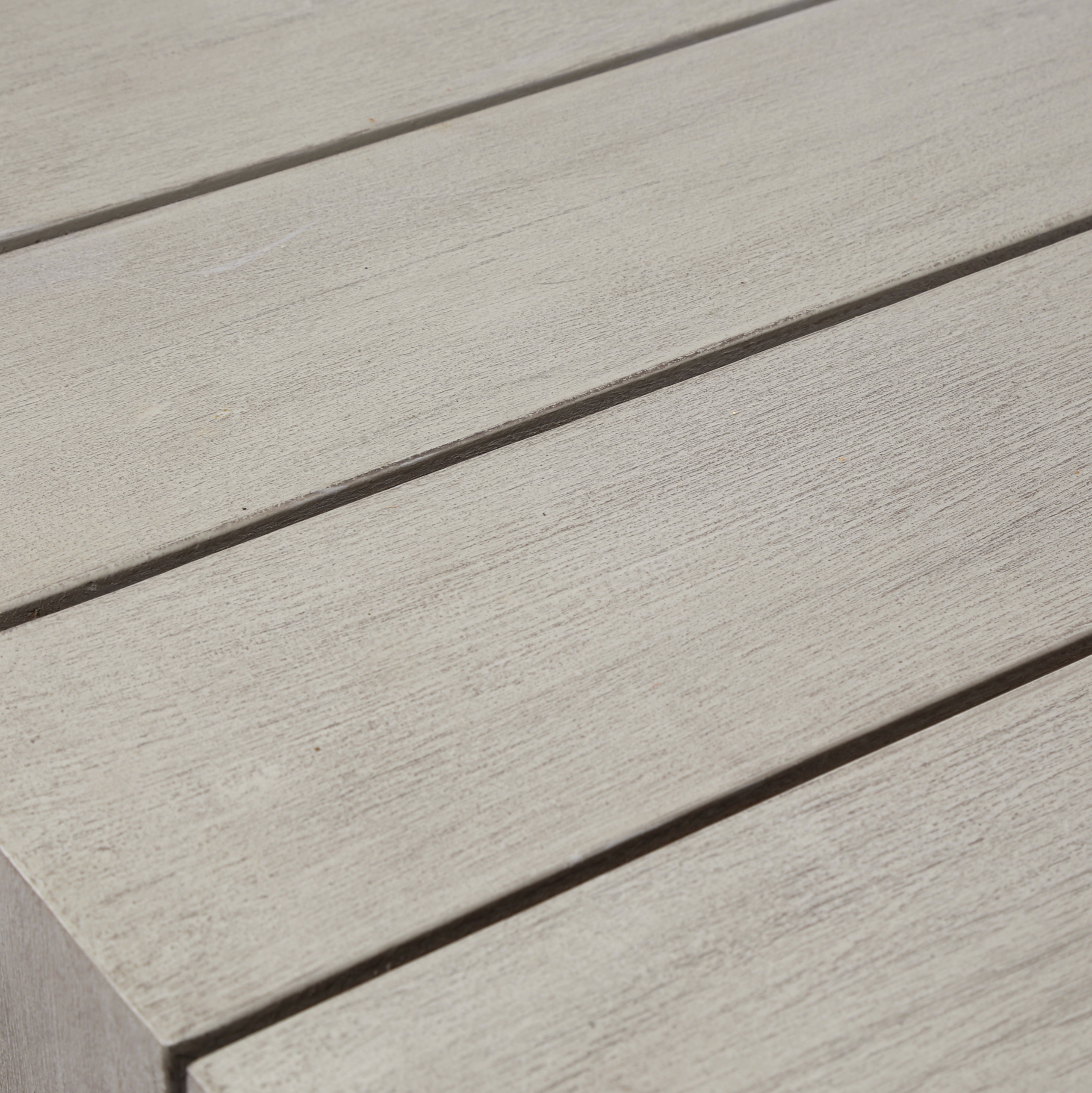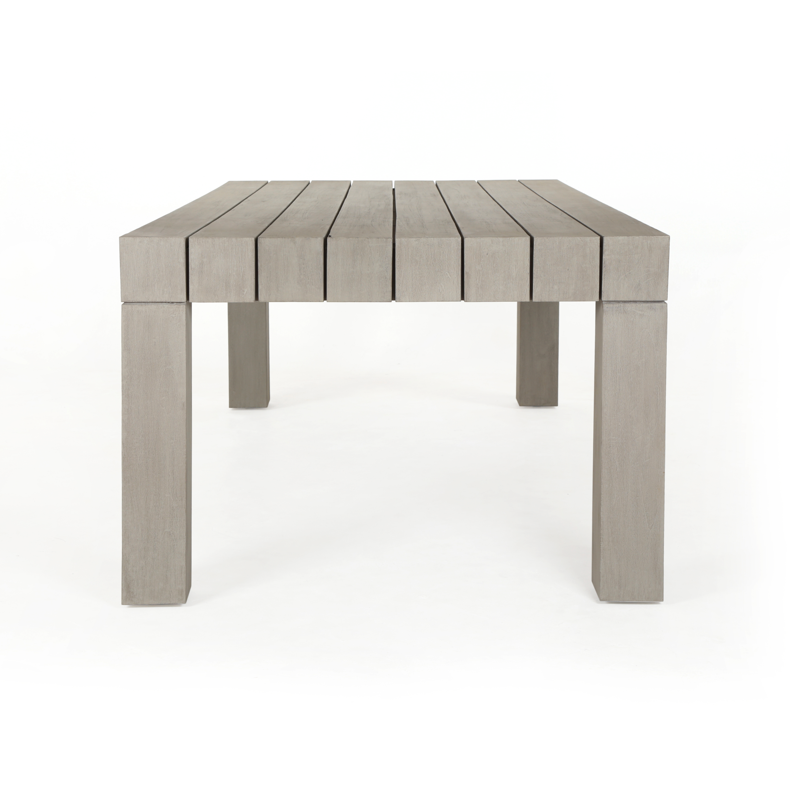 Organic elements, indoors or out. Teak wood is fashioned into a clean-lined dining table and weathered to a natural grey. Safe for outdoor use - cover or store indoors during inclement weather and when not in use.