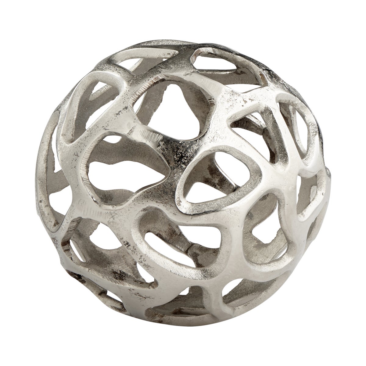 A nebulous cloud captured in a raw nickel finish takes space age modern to a new level. This small ornamental accessory chases the stars.
