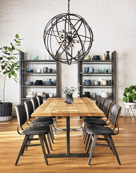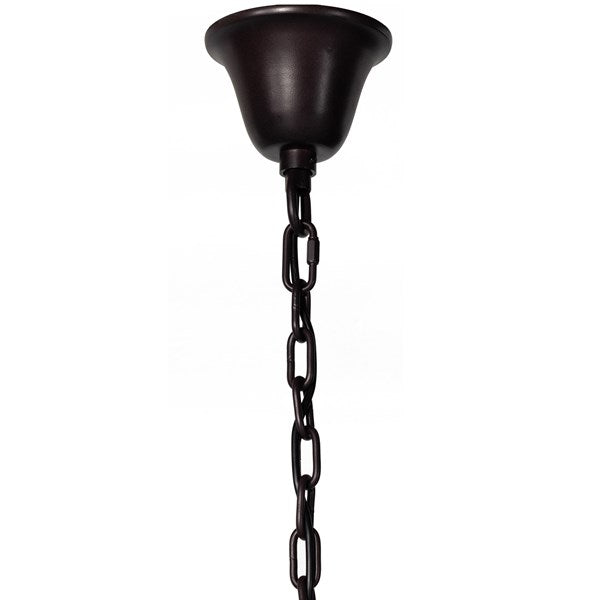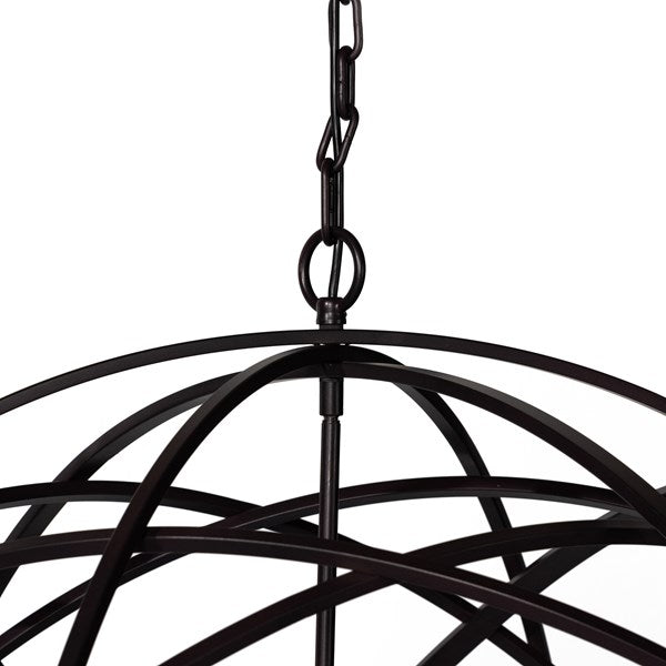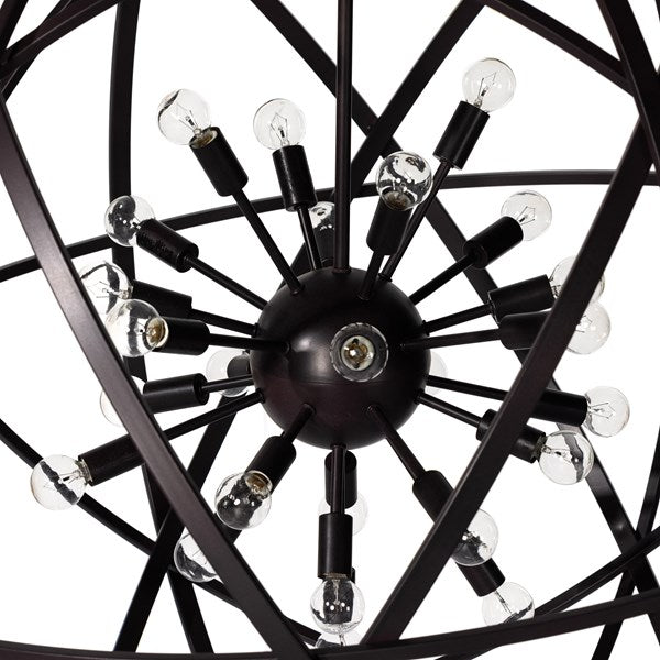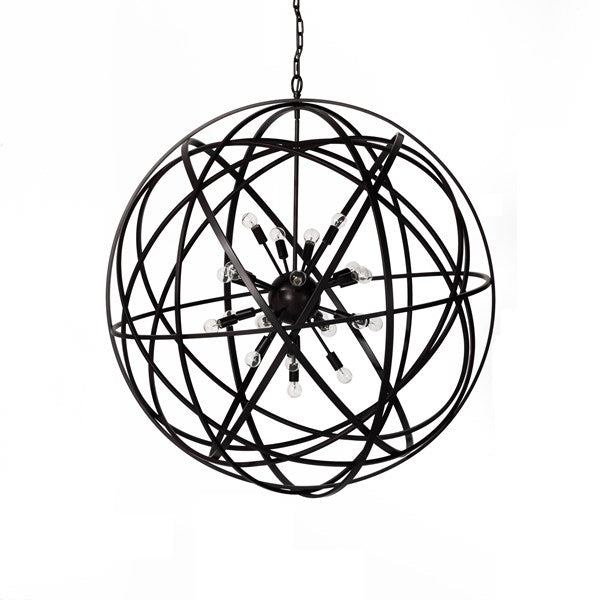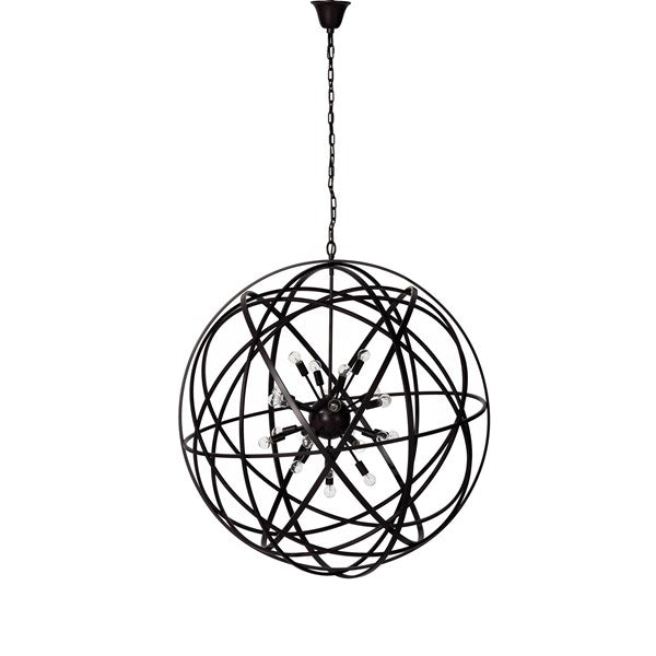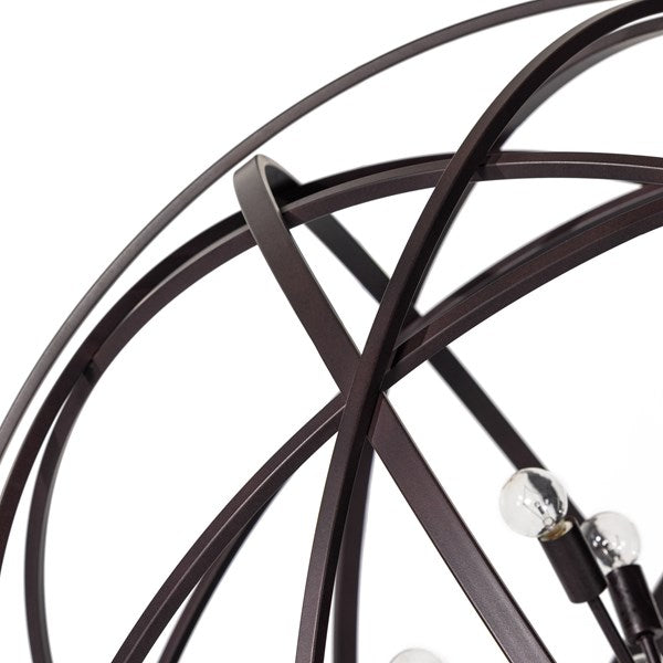 Turn on the drama. An open, orb-shaped chandelier adopts an antique rust finish, bringing a hint of vintage allure to a modern design. Interior sphere features Sputnik-style bulbs, radiating glamorous edge. Includes 24" chain and bulbs.