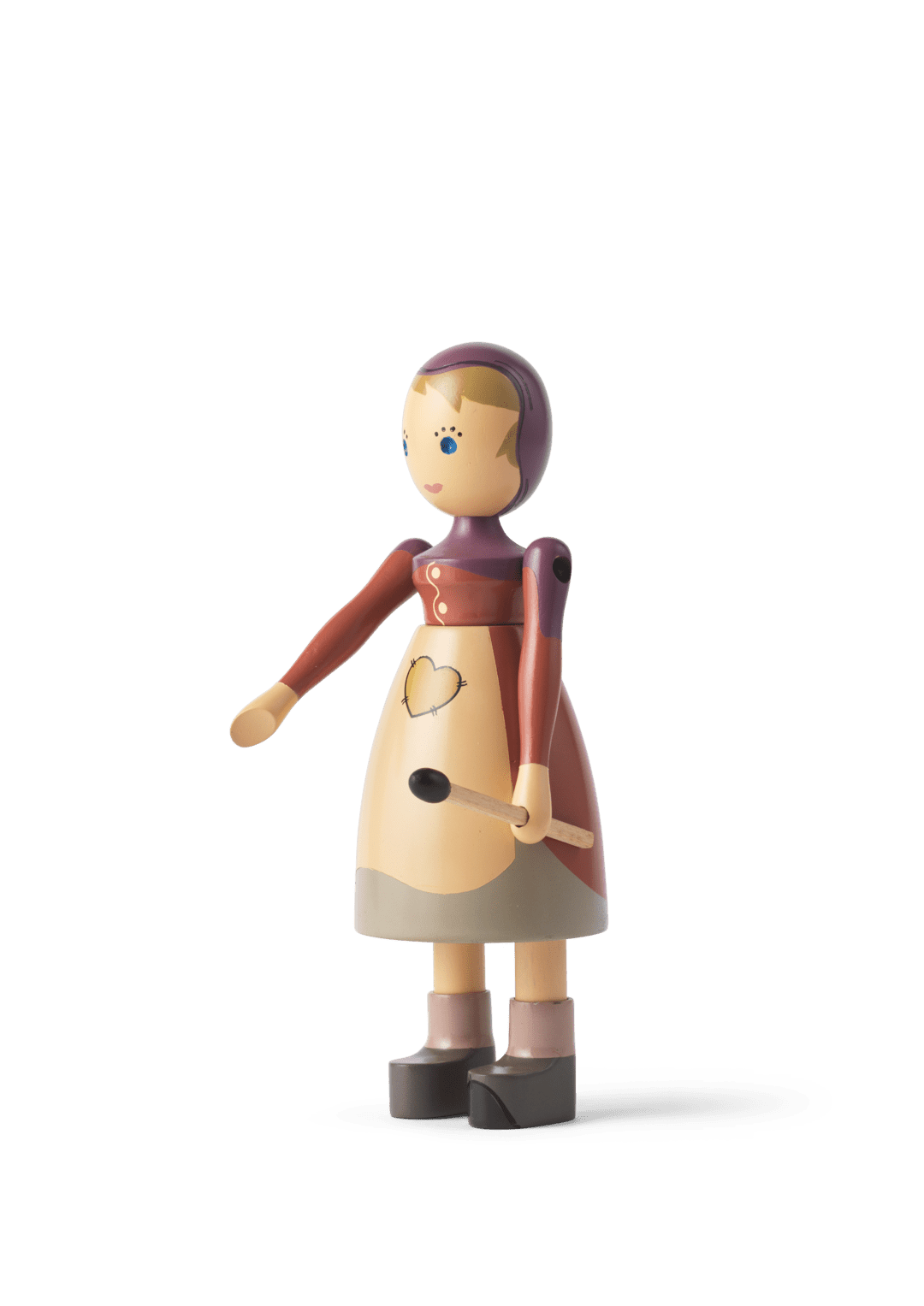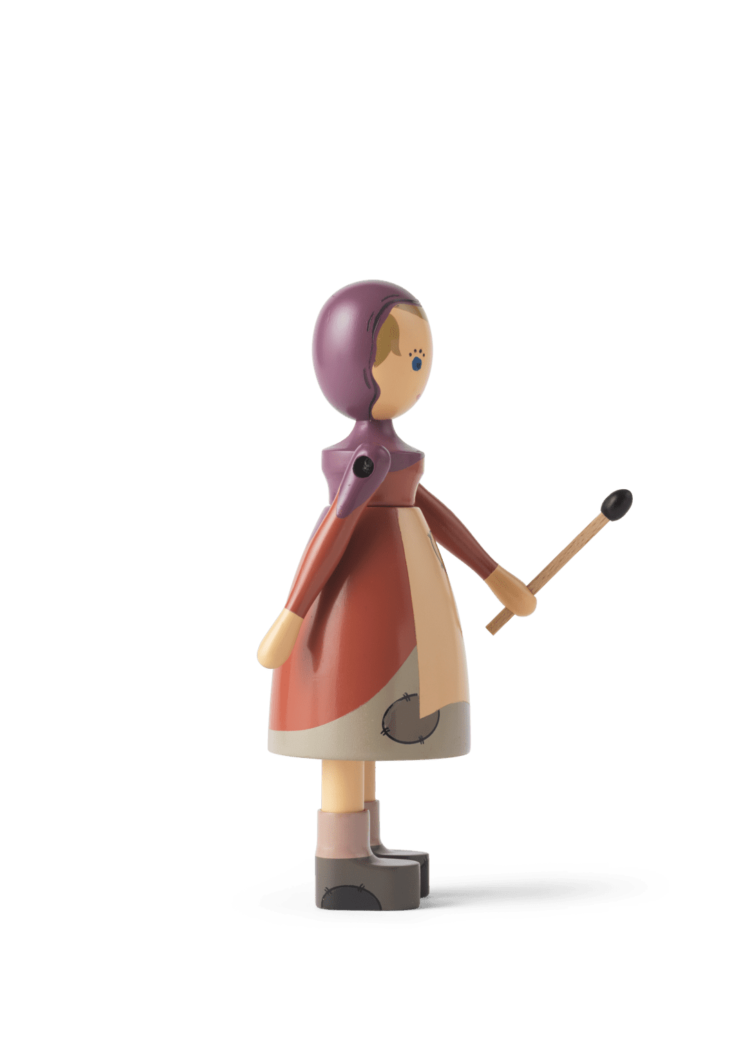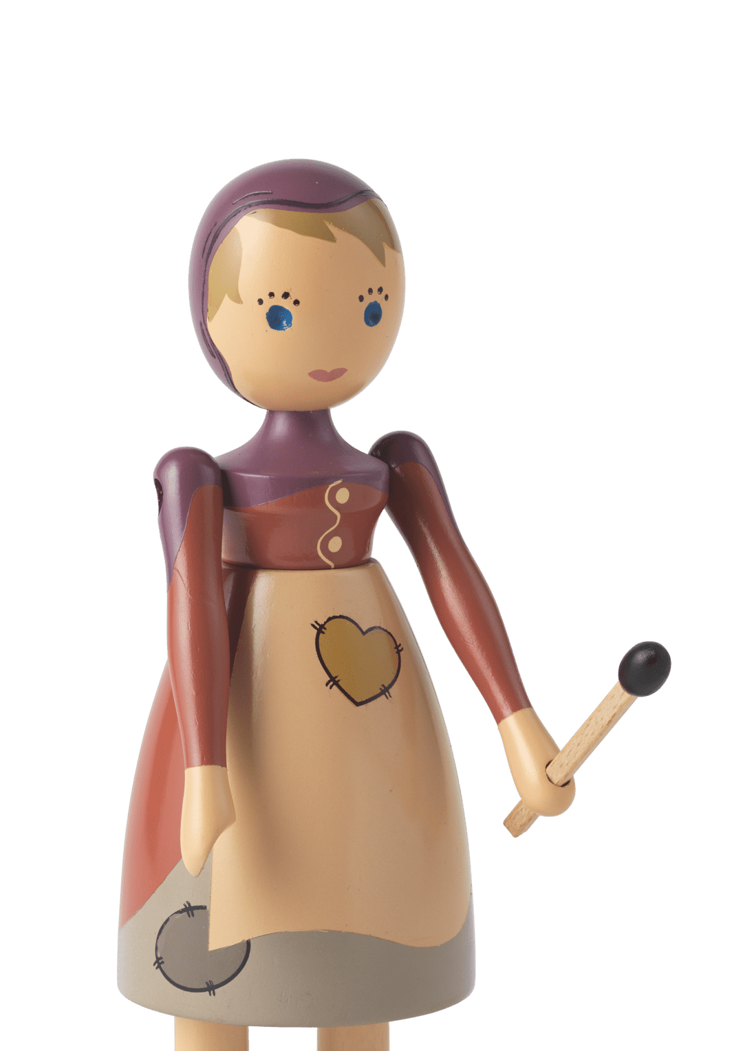 Let the adventure live on through original wooden stories. In 2021, when the H.C. Andersens Hus museum opened in Odense, the museum and Kay Bojesen Denmark began a collaboration, to make it now possible to find some of the most famous and loved figures from the world-famous fairy tales interpreted in Kay Bojesen's universe of original stories in wood. The Nightengale, The Shepherdess and the Chimney Sweep and The Sandman were the first to move onto the shelves of the museum store. The Little Match Girl has also found her way into the warmth. In Kay Bojesen's interpretation, she wears a hood that goes down over her shoulders. The little girl has patches on her dress and apron, which are kept in toned-down colors, emphasizing that she comes from poverty. Her warm smile and gentle, innocent expressions are born of the beautiful experiences she envisions while gazing in the firelight, when on a cold New Year's Eve her imagination awakens with fantastic dreamscapes filled with joy and security. In her hand, she holds a matchstick that completes the story. The Little Match Girl measures 5.7" in height and is turned in FSC-certified beech wood, and the manual production with paint and printing is carried out with the great precision and care that characterize Kay Bojesen's wooden figures. The shape is based on the original Lise figure from Kay Bojesen's archive, which is simple and minimalistic, but full of life and soul. This gives the Little Match Girl a feeling of magic and adventure that is in line with Kay Bojesen's spirit and the storytelling he managed to create in designing his imaginative figures.