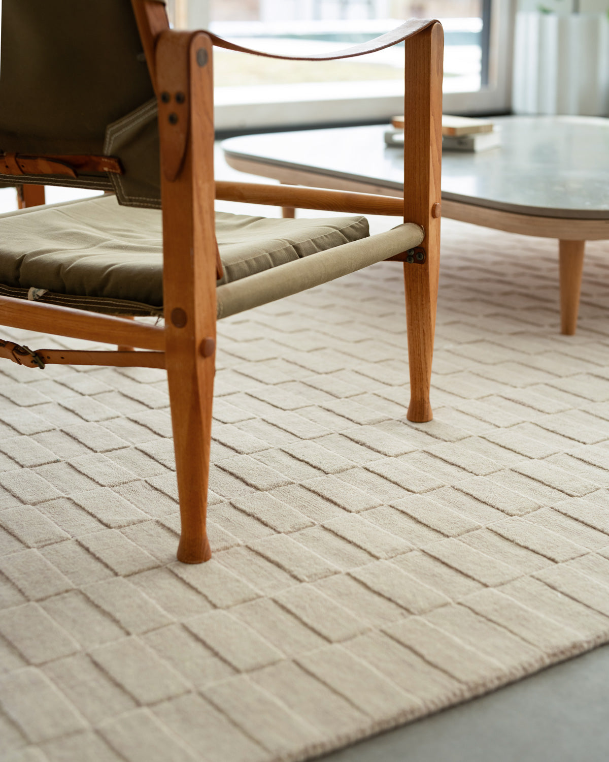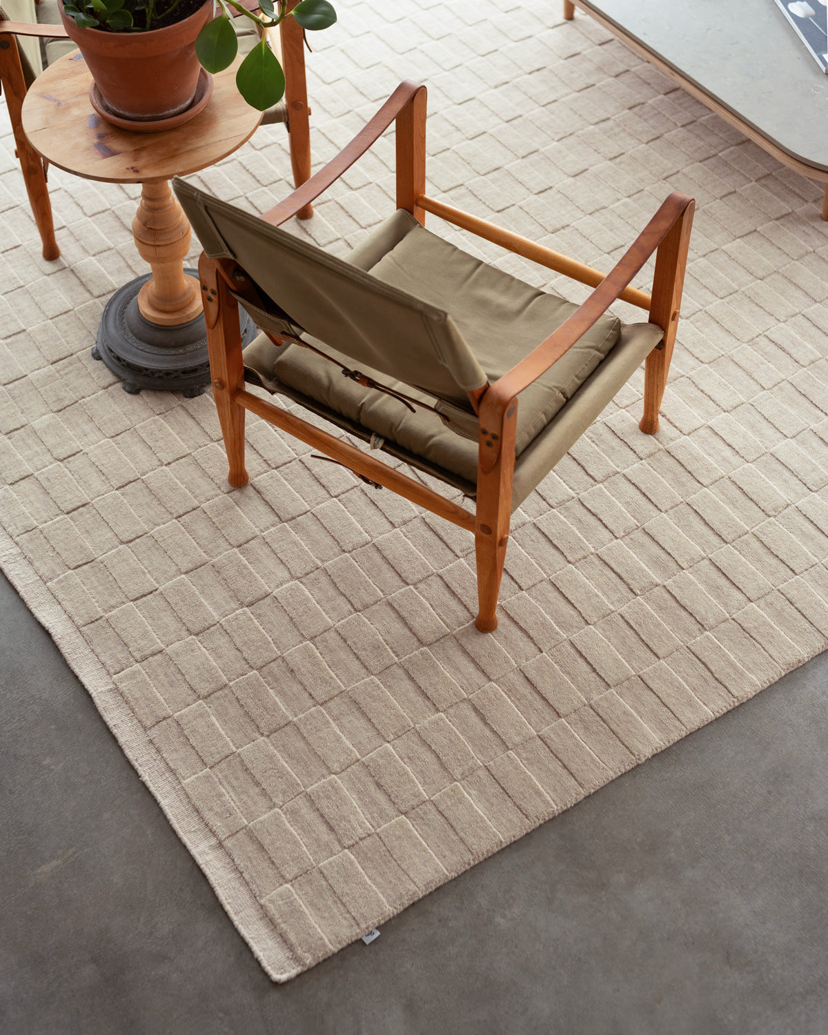 Tile is a flatweave pile rug made on a hand loom. It is very tightly woven yarns and the highest density of any rug we have produced. 100% of the materials used to make the Tile rug are natural, which means the colors and patterns in your rug will be slightly different from your friend’s, for example.