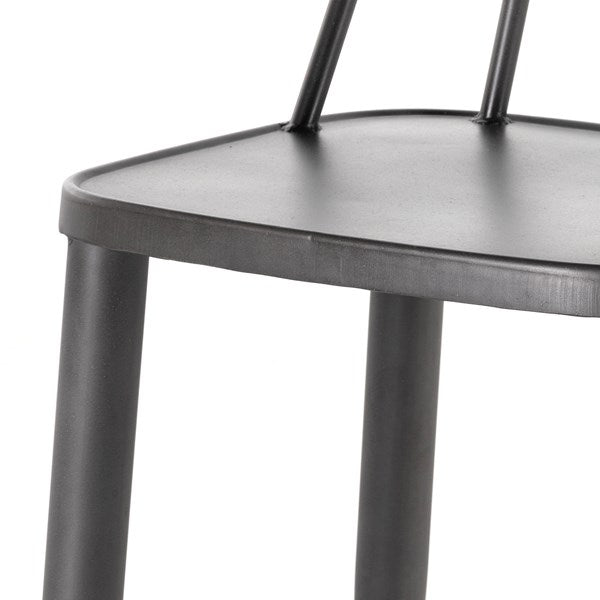 Try a fresh twist on the traditional Windsor, made entirely from black-finished iron as to pair with a wide range of tables, from wood to marble and more.