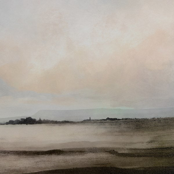 Artist Dan Hobday finds inspiration in the coastal landscapes of his hometown of Devon, England. This serene piece is framed within rustic-finished walnut for a museum-quality look. Handmade in Austin, Texas.