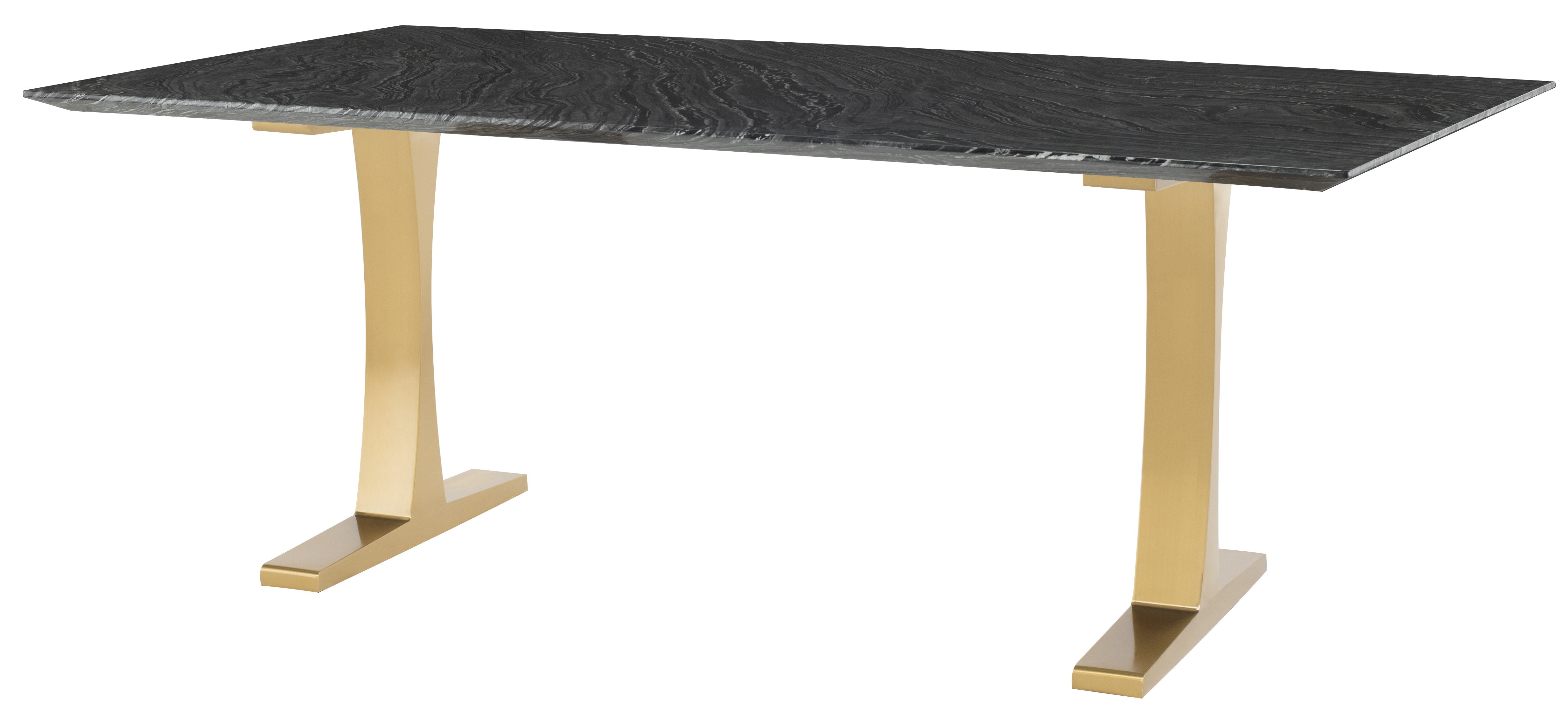 Toulouse Dining Table - Black Wood Vein with Brushed Gold Legs