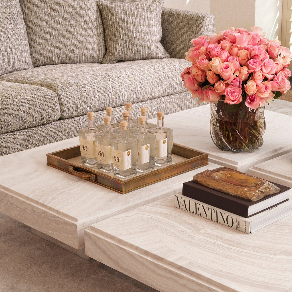 The large square Trouvaille Tray with vintage brass finish is a luxury home accessory that exudes aviator style.