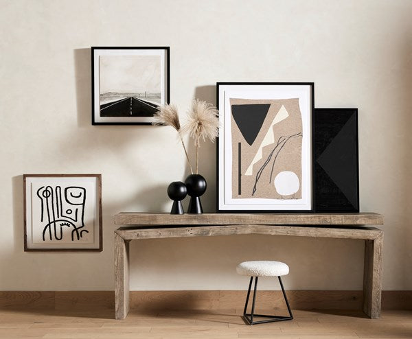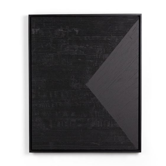 Los Angeles artist and interior designer Victoria Holly looks to classic colors and simple shapes for her minimalist, plaster-based paintings. Using a progressive printing technique which layers ink to create tangible texture, this piece is texture printed on matte canvas and framed within black-finished American maple for a museum-quality look. Pairs perfectly with Triangle Left. Handmade in Austin, Texas.