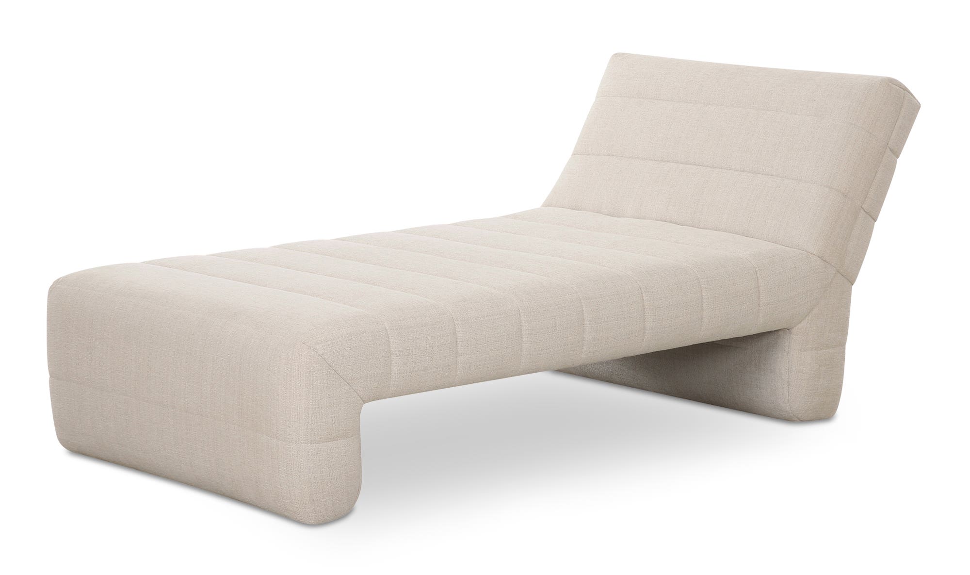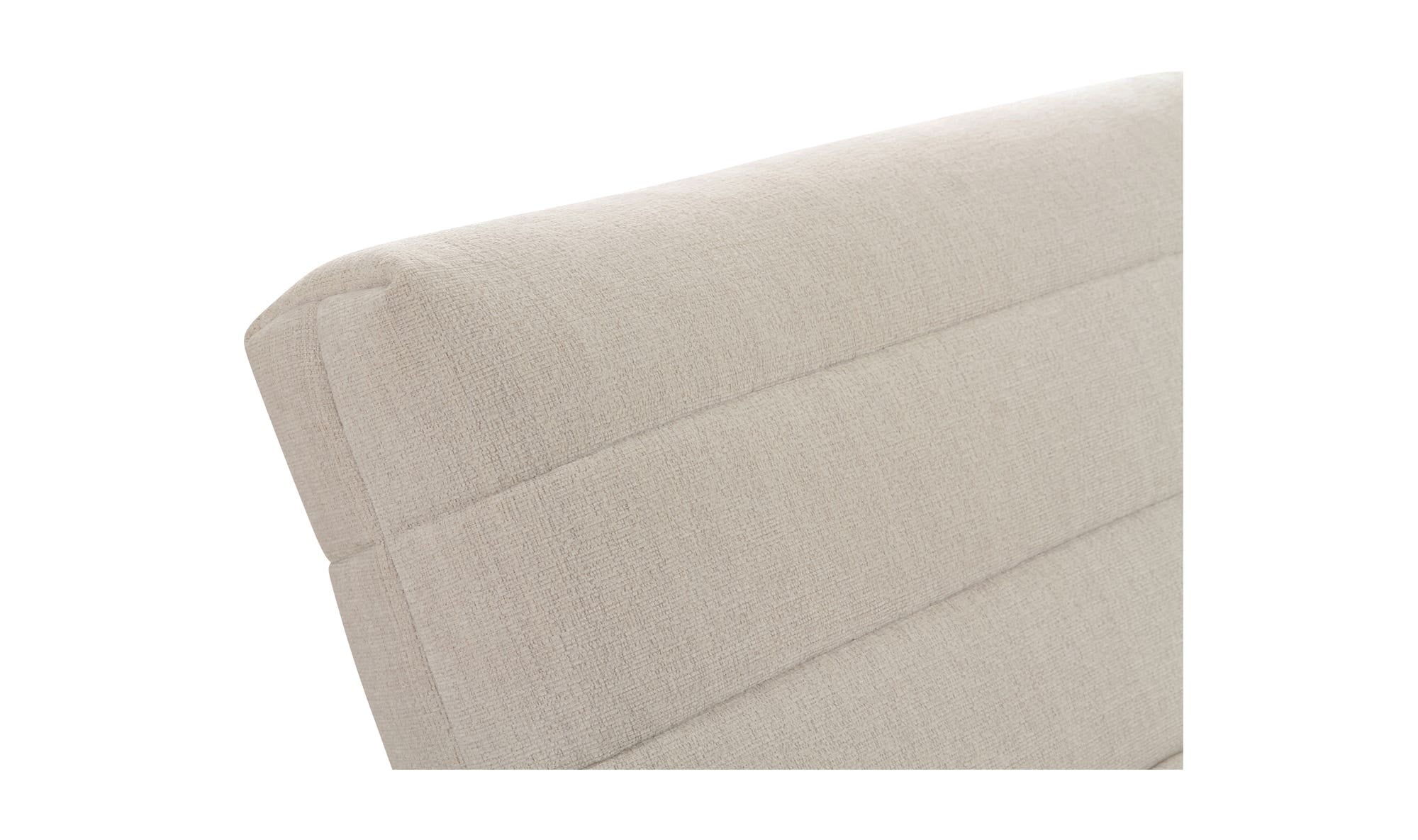 The Verity chaise features a plump form enveloped in soft, flecked textured upholstery with warm tones for a touch of elegance. Wide channel detailing adds texture and visual interest, complemented by rich, warm tones that tell a story of comfort and coziness as the high-density foam seat provides a plush seating experience.