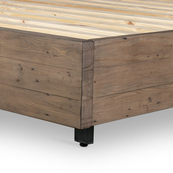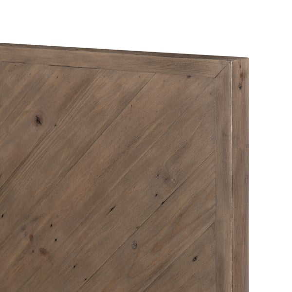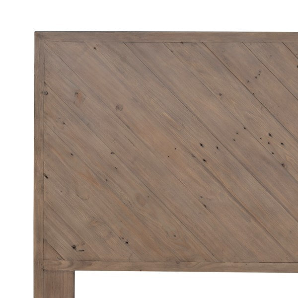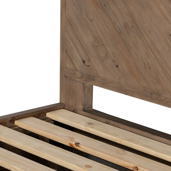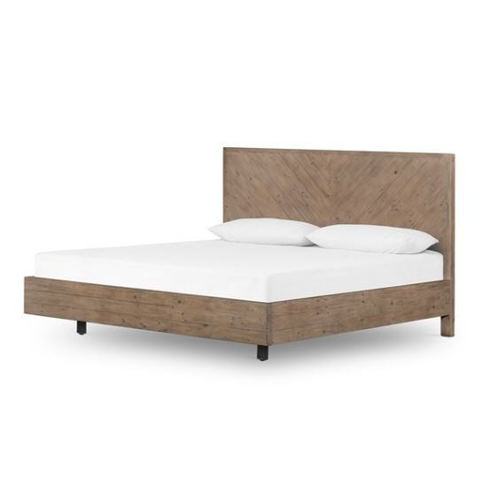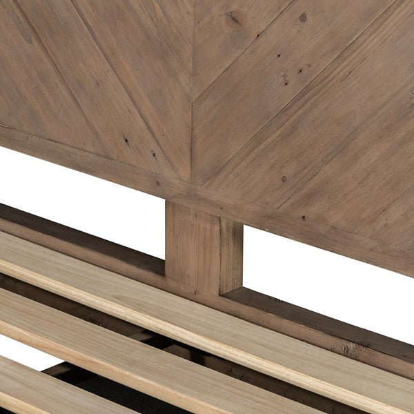 Finished in a sundried ash, FSC-certified reclaimed woods adopt a subtle chevron-like pattern bringing depth to this clean, simply styled bed.