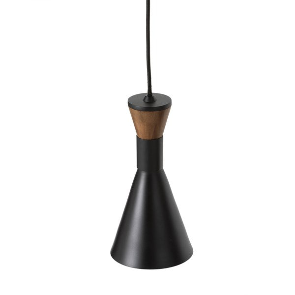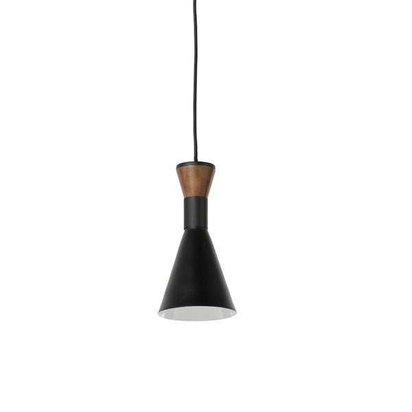 Switch on the mid-century vibes. Black powder-coated iron shades feature white-coated interiors, for a crisper, brighter light. Brown acacia detailing adds a subtle retro touch. Great in pairs or multiples, over the dining table, in the entryway and beyond.