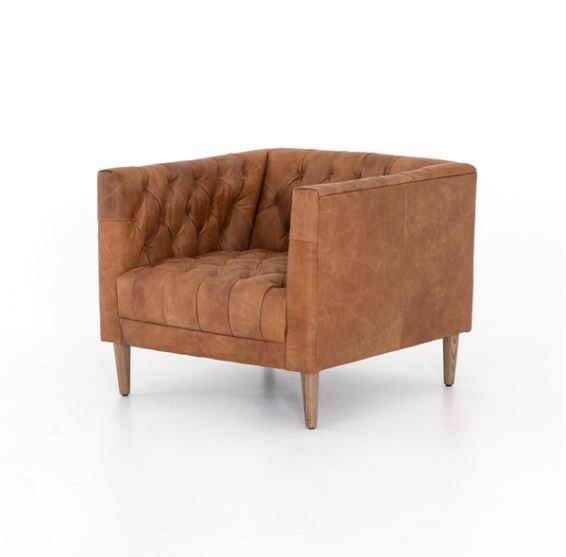 Tufted and well-tailored. Squared shelter arms and a low profile deliver a dose of mid-century flair to top-grain leather seating in a natural-washed camel.